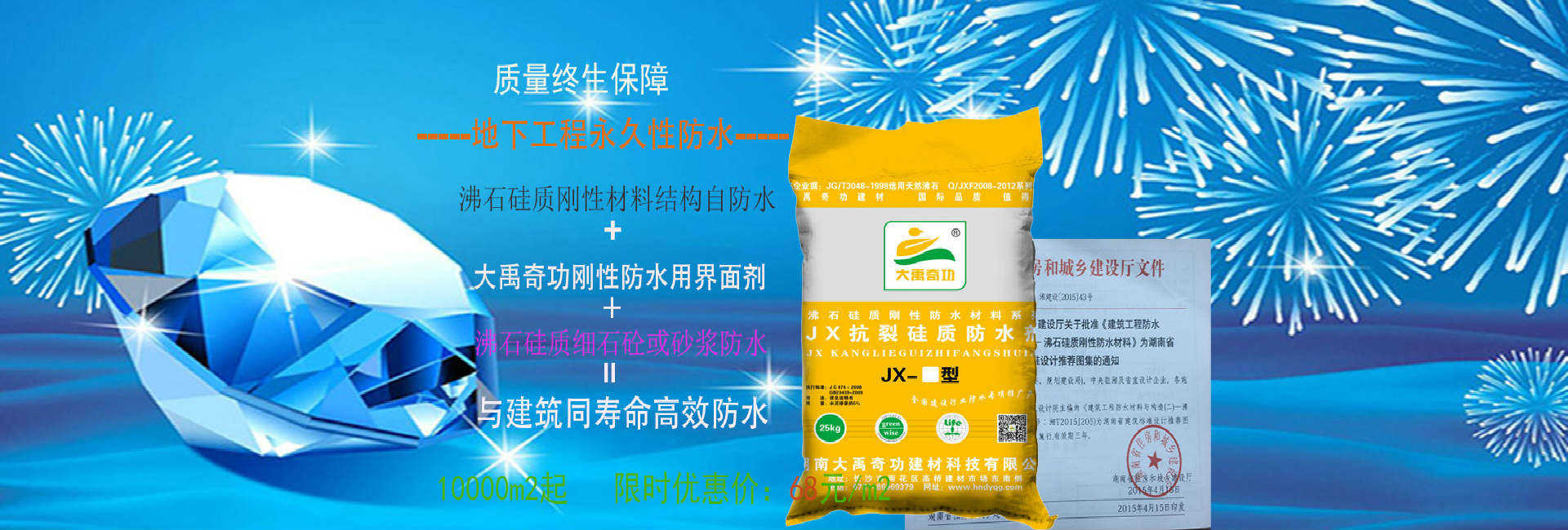 湖南大禹奇功建材科技有限公司,是應現代科技和人們品質生活的需要成立的。經研發、生產、銷售新型環保建筑材料、防水材料、砼外加劑。與工程施工為一體的,現代化綜合型建材高科技企業,其前身為海外注冊的“美亞集團香港國際企業有限公司” 公司技術力量雄厚,擁有專門的科研開發、設計人員和海外研發基地,并具有一支技術過硬的專業施工隊伍和完善的質量管理體系,自主研發的“大禹奇功”“大禹圣君”“多美亞”品牌產品,引進海外先進技術、采用中德合資原材料、美國助劑,其質量和技術得到了充分保障。最近公司研發團隊在高分子卷材環保、耐侯,及環保型合成高分子涂料的研發取得了新的成就,研發的適應天面、平臺等外露場所的抗紫外線、環保型露天防水涂料,和新型高分子自粘卷材已申請國家專利。...